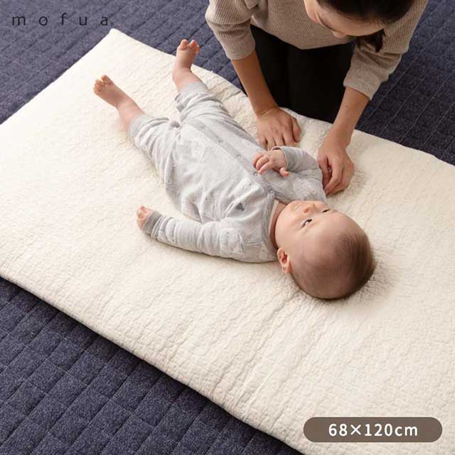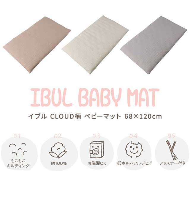 mofua(モフア)イブル CLOUD柄 綿100% ベビーマット(キルトカバー付) 68cm×120cm オールシーズン もこもこ キルティング 洗える 洗濯OK 低ホルム 寝返り マットレス 布団 敷き布団 おむつ交換 ベビーベッド ベビー 赤ちゃん 乳児 北欧 送料無料