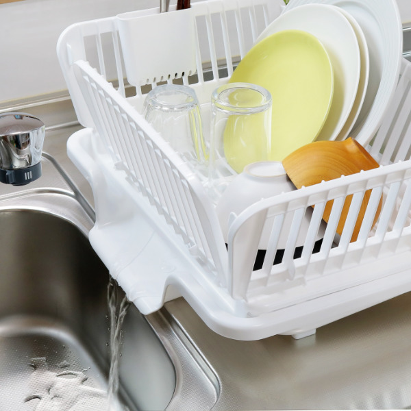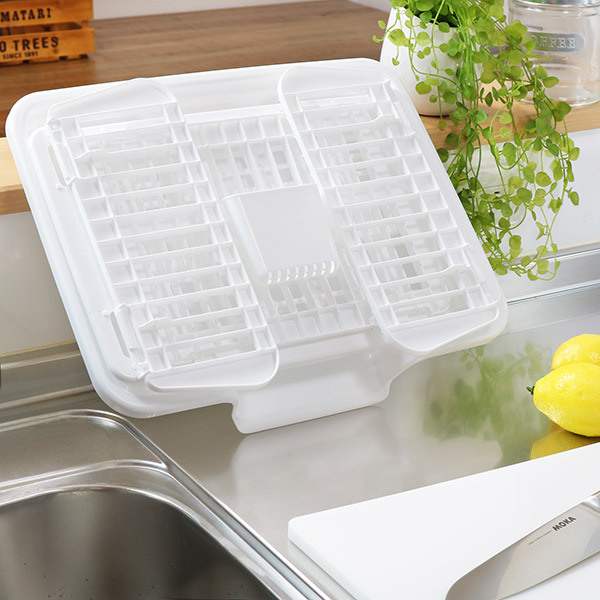 水受けトレーには傾斜がついており、食器から落ちた水がそのままシンクへと流れていくため、水はけ抜群で水垢やヌメりもつきにくく乾きも早いです。また、かご側面は取り外しができ、隅々まで洗えていつも清潔にお使いいただけます。プラスチック製なので丈夫で軽く、お手入れも簡単で錆びの心配もありません。