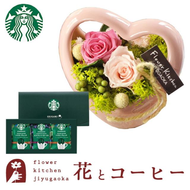 枯れない花とコーヒーのセット チャーミングハート ピンク とスターバックスコーヒーギフトセット 最短翌日着 送料無料(一部地域を除く) 誕生日 プレゼント 枯れない花 バレンタイン ホワイトデー FKTPHSW