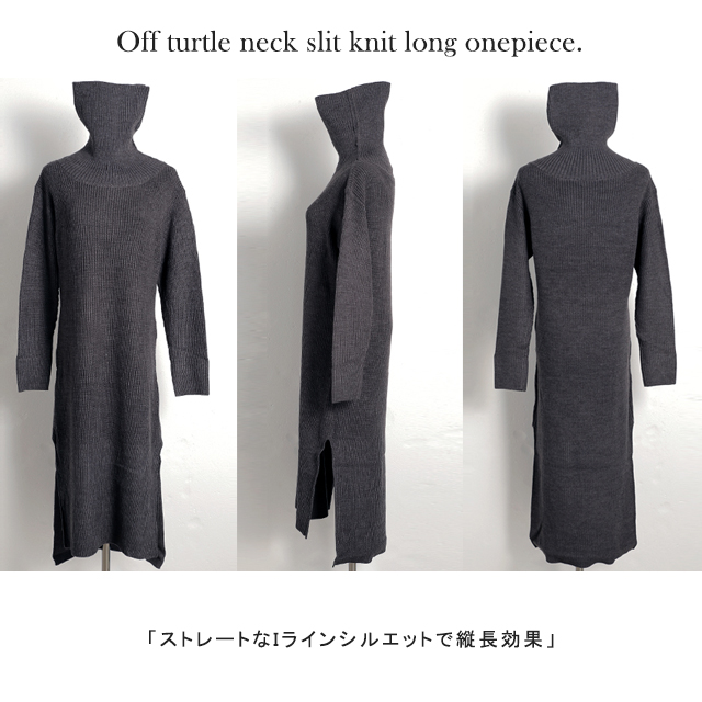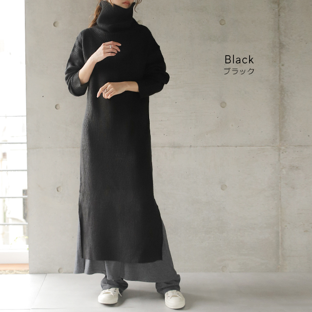 やわらか「 大人 の ニットワンピ 」ワンピース レディース ニットワンピース ワンピ ニット ロング タートルネック ハイネック タートル オフタートル セーター リブニット リブ 長袖 スリット レイヤード 大きいサイズ ブラック 白 秋 冬 HUG.U 秋新作