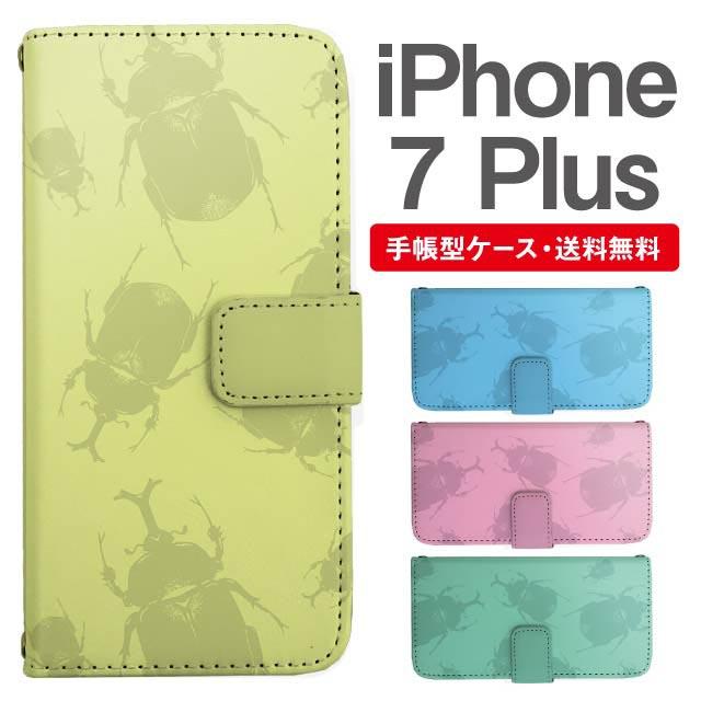 スマホケース 手帳型 iPhone7Plus アイフォン 携帯ケース カバー 送料無料 昆虫柄 カブトムシ アニマル agesugi_ssm