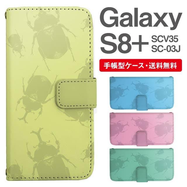 スマホケース 手帳型 Galaxy S8+ ギャラクシー SC-03J SCV35 携帯ケース カバー 送料無料 昆虫柄 カブトムシ アニマル agesugi_ssm