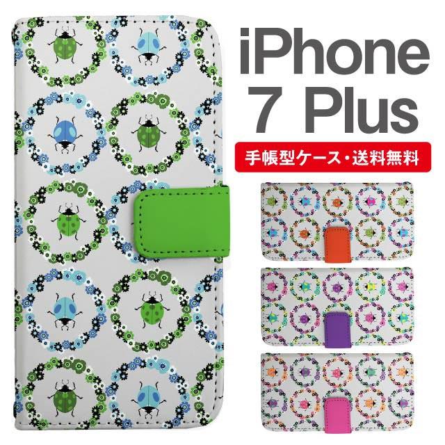 スマホケース 手帳型 iPhone7Plus アイフォン 携帯ケース カバー 送料無料 てんとうむし フラワー 昆虫柄 花柄 agesugi_ssm