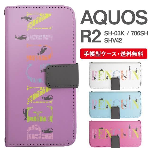 スマホケース 手帳型 AQUOS R2 アクオス SH-03K SHV42 706SH 携帯ケース カバー 送料無料 ペンギン アニマル 動物 agesugi_ssm