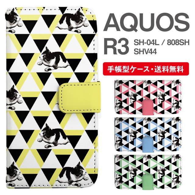 スマホケース 手帳型 AQUOS R3 アクオス SH-04L SHV44 808SH 携帯ケース カバー 送料無料 ねこ 猫 アニマル 動物 agesugi_ssm