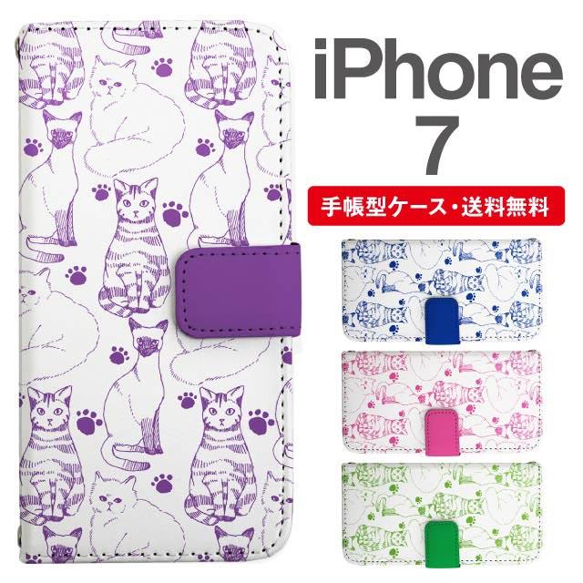 スマホケース 手帳型 iPhone7 アイフォン 携帯ケース カバー 送料無料 ねこ 猫 アニマル 動物 agesugi_ssm
