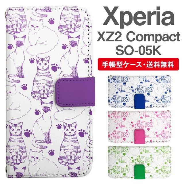 スマホケース 手帳型 Xperia XZ2 Compact エクスペリア SO-05K 携帯ケース カバー 送料無料 ねこ 猫 アニマル 動物 agesugi_ssm