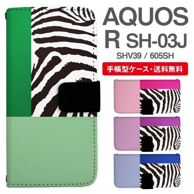 スマホケース 手帳型 AQUOS R アクオス SH-03J SHV39 605SH 携帯ケース カバー 送料無料 シマウマ ゼブラ柄 アニマル agesugi_ssm