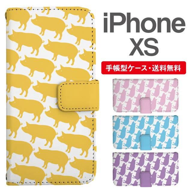 スマホケース 手帳型 iPhone XS アイフォン 携帯ケース カバー 送料無料 ぶた 豚 アニマル 動物 agesugi_ssm