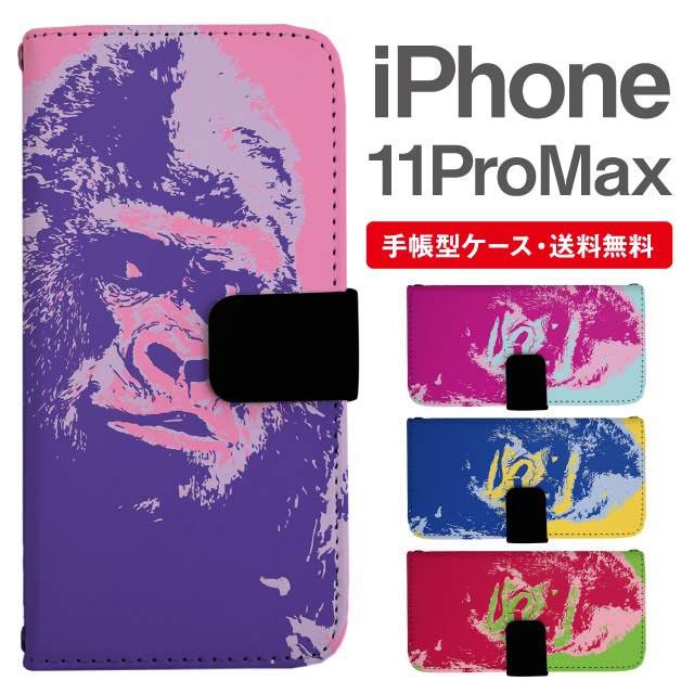 スマホケース 手帳型 iPhone 11 Pro Max アイフォン 携帯ケース カバー 送料無料 ゴリラ アニマル 動物 agesugi_ssm