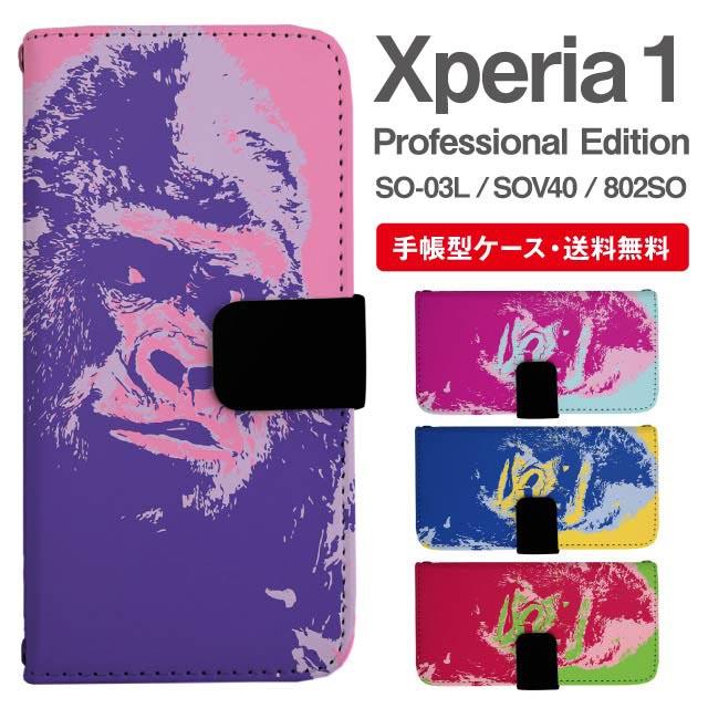 スマホケース 手帳型 Xperia 1 エクスペリア SO-03L SOV40 802SO Xperia1 Professional Edition 携帯ケース カバー 送料無料 ゴリラ アニマル 動物 agesugi_ssm