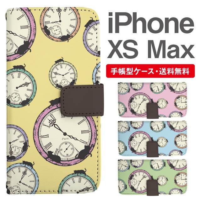 スマホケース 手帳型 iPhone XS Max アイフォン 携帯ケース カバー 送料無料 ねこ 時計柄 猫 アニマル 動物 agesugi_ssm