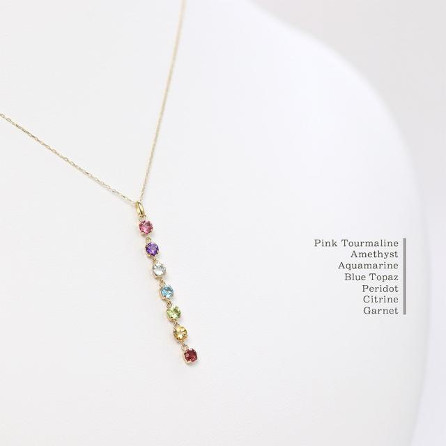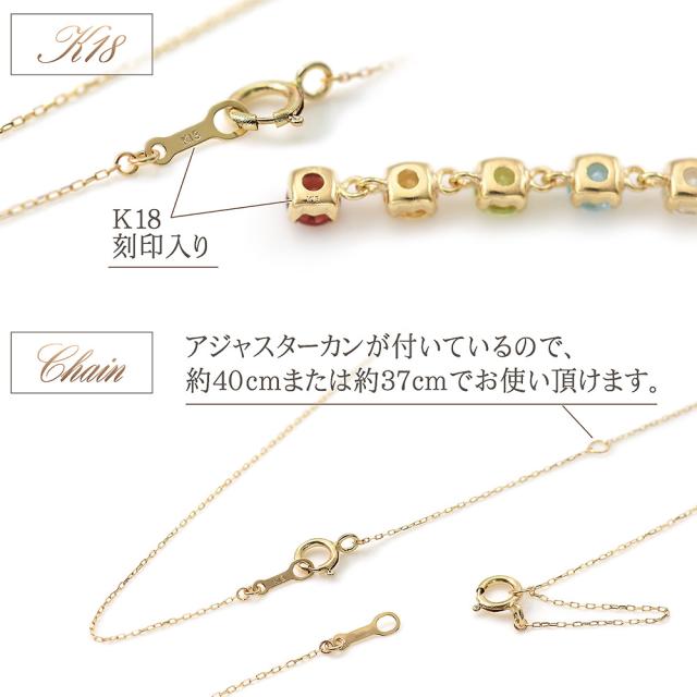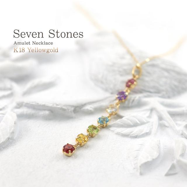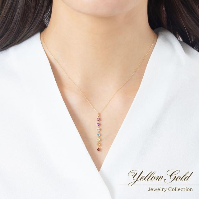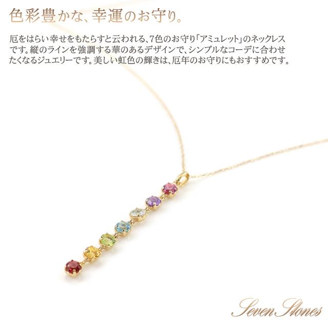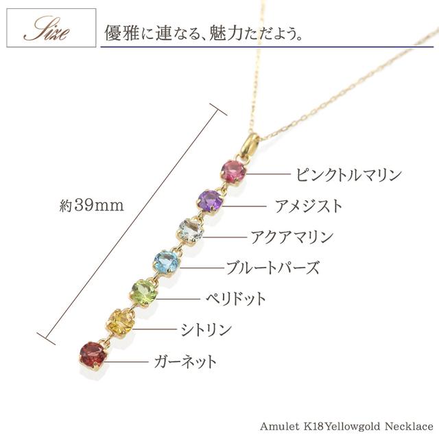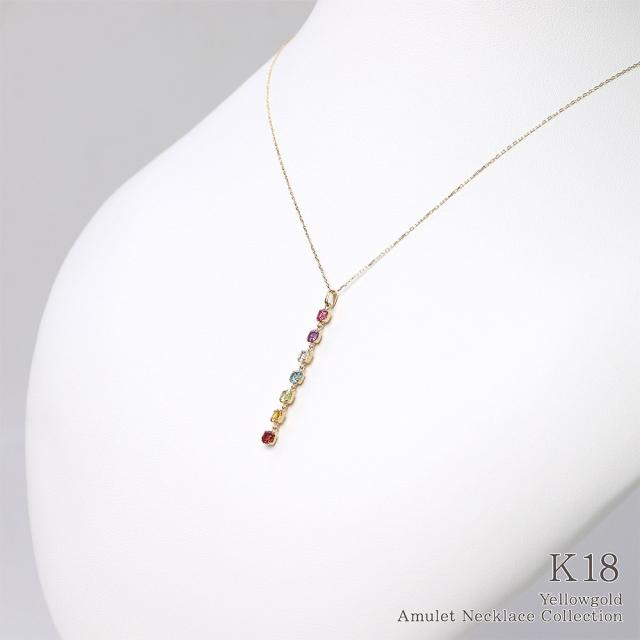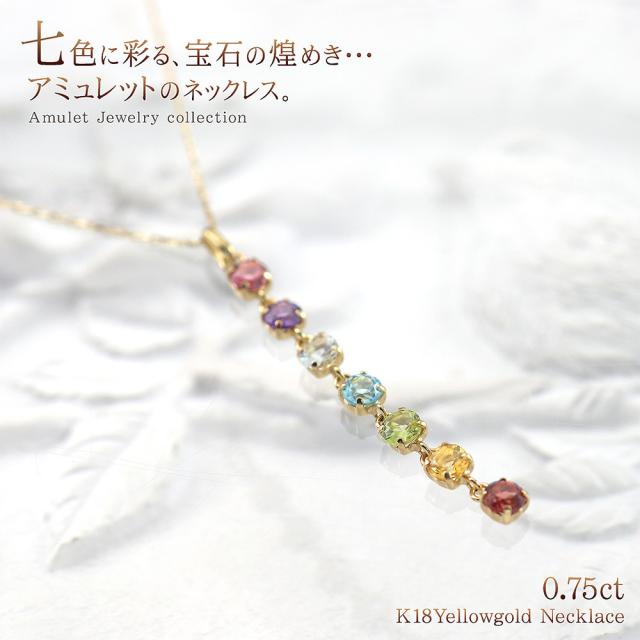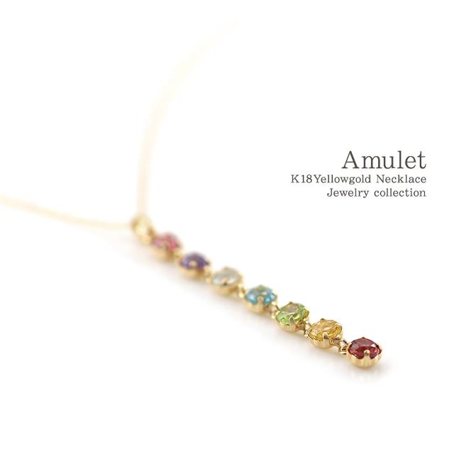アミュレット ネックレス 18金 イエローゴールド K18 18K 7粒 レインボー 虹色 宝石 誕生日 プレゼント 女性 可愛い トルマリン アメジスト アクアマリン トパーズ ペリドット シトリン ガーネット 母の日 ギフト 2026 ギフト 誕生日