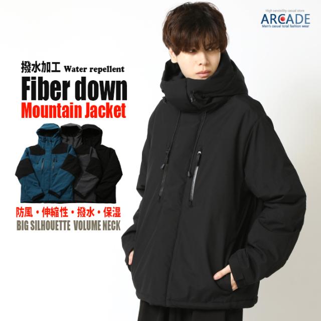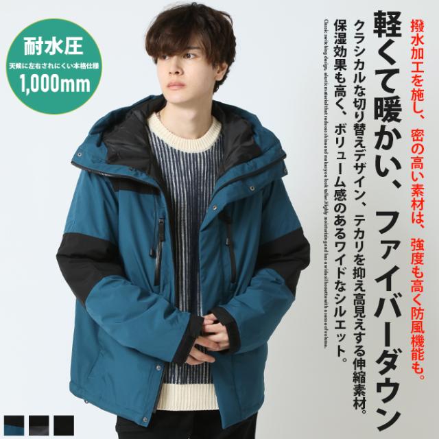 ダウンジャケット メンズ ファイバーダウンジャケット 中綿ジャケット 撥水 マウンテンジャケット メンズファッション アウター 冬服 秋冬新作