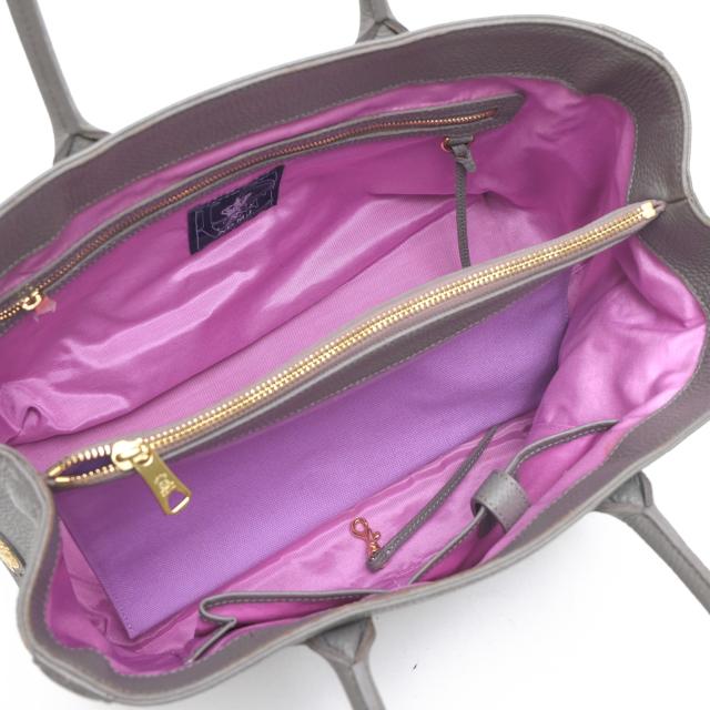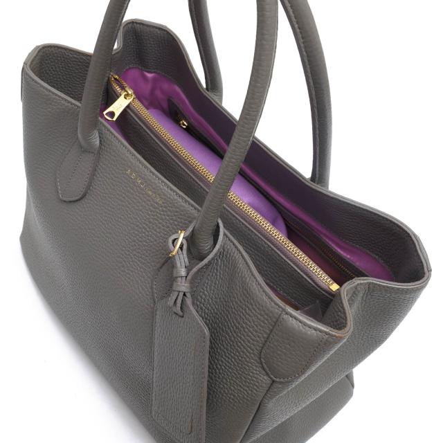 ADMJの人気トートバッグ。上質な牛革シュリンクレザーを使用しているので、高級感があり、傷つきにくいのが特徴です。マチも広く、煩雑になりがちな荷物を整理できるのはもちろん、貴重品の収納にも便利です。床に置いた時に底の汚れを防ぐ鋲がついていて安心です。ADMJらしいデザイン性の高さや、使い勝手の良さなど魅力的なアイテム。また別名「マザートート」とも言われており、お母さんにもぴったりです。