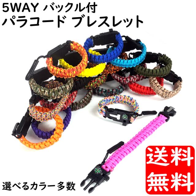 オリジナル パラコード ブレスレット 5WAY バックル ファイヤースターター スクレーパー コンパス 3m パラシュートコード