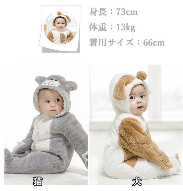 赤ちゃん ねこ着ぐるみ 猫仮装 犬仮装 オールインワン キッズ ベビー ロンパース カバーオール 男の子 女の子 防寒厚手 冬服 防寒着 新生児 長袖