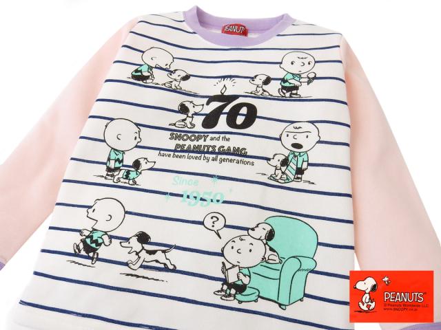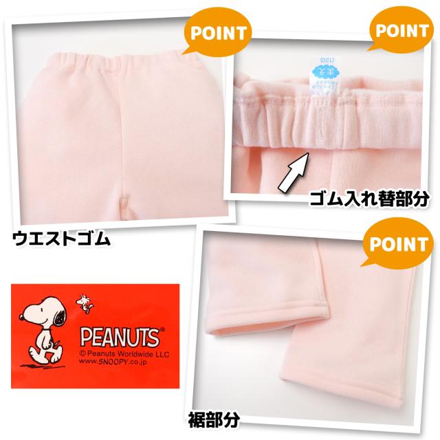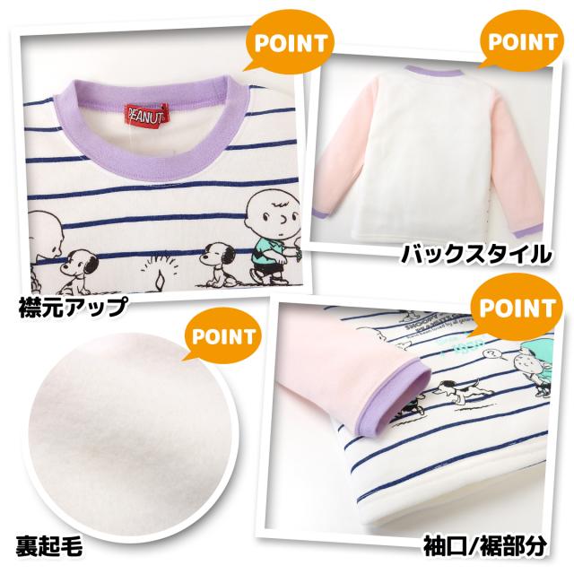 【送料無料】女児 キッズ 裏起毛 長袖 パジャマ 上下組 スヌーピー ボーダー プリント ウエストゴム ゴム入れ替え付き 子供服 女の子 110cm 120cm 130cm td-0076【メール便対応】