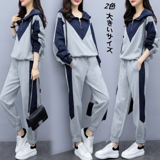 ジャージ レディースおしやれ 春秋 長袖 セットアップ カジュアル 2点セット スウェットスポーツウェア 運動服 部屋着 着痩せ 新作