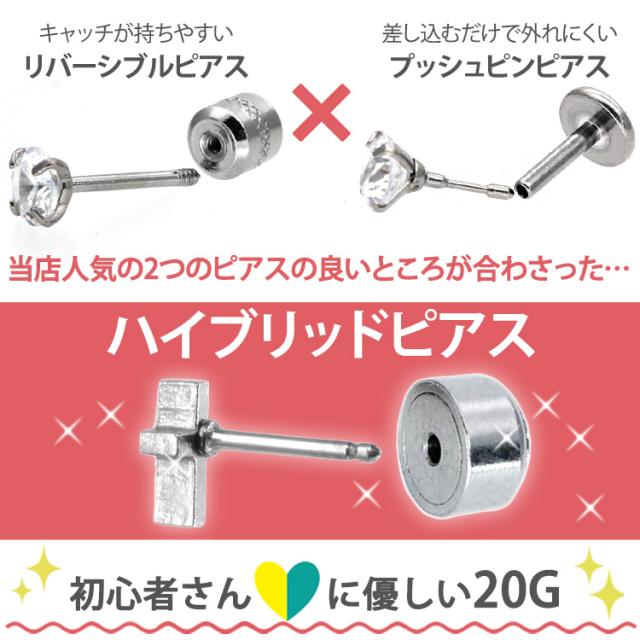 金属アレルギー対応 20G つけっぱなしにおすすめ フラットクロスカチットピアス 【片耳用】 ボディピアス 軟骨ピアス トラガス ヘリックス ファーストピアス セカンドピアス ボディピアス 華奢