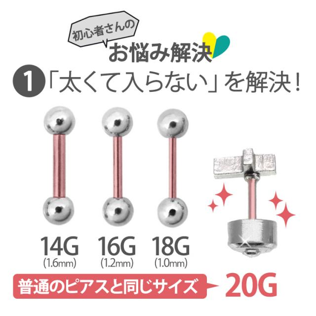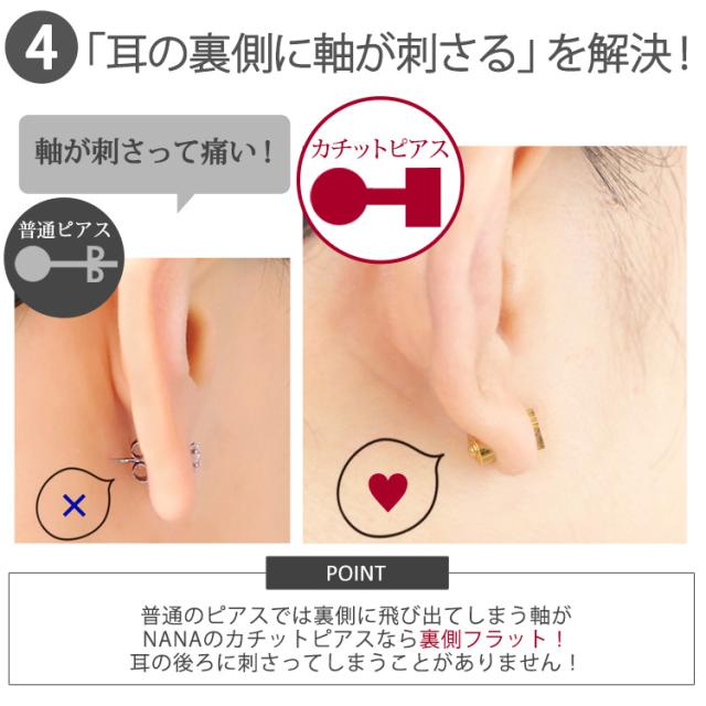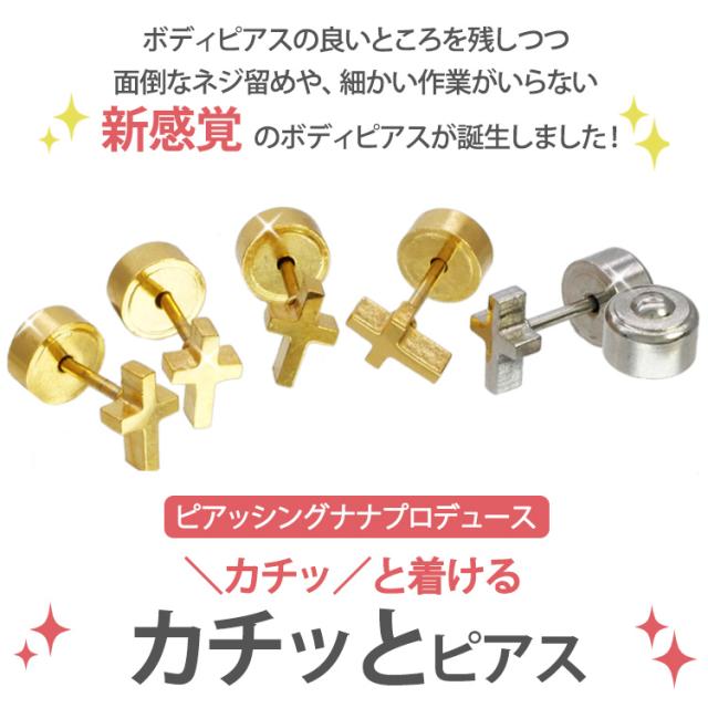 カチッと差し込むだけで装着できる新感覚のボディピアス。 「ネジタイプは付けるのが難しい」「細い軸の穴にピンを差し込むのが難しい」 こんなお悩みを抱えていませんか? ネジでもない、調整もいらない、新感覚のカチットピアスなら、ボディピアス初心者さんも気軽に楽しめます。 簡単なのに外れにくいくぼみ構造でつけっぱなしでも安心してお使いいただけます。 シンプルなフラットデザインなので引っかかりも少なく普段使いにぴったりです。 カラーは人気のシルバー・ゴールドからお選びいただけます。