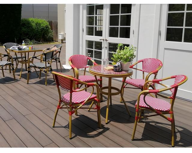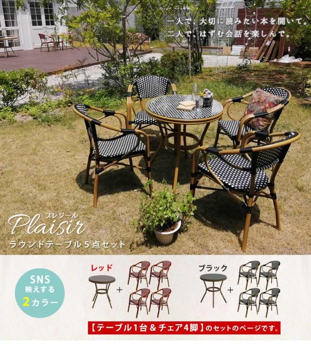 外国のオープンカフェ風 ガーデンテーブルセット 5点セット 丸テーブル 送料無料 ラタン調 ガーデンファニチャー アルミ ガーデン家具 庭 屋外用テーブルセット 4人用 4人掛け 格安 安い 高級 ラタン おしゃれ アルミ ガラス 椅子 4脚