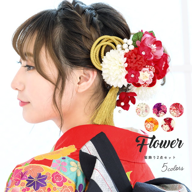 成人式 髪飾り つまみ 細工 花 2点セット パール 振袖 卒業式 袴 日本製 送料無料