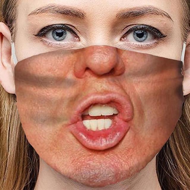 尖らせた口元がまるで「エイドリアーン!!」「ミキティ—!!」「愛してるよーー!」と叫んでいるように見えるおもしろマスク。