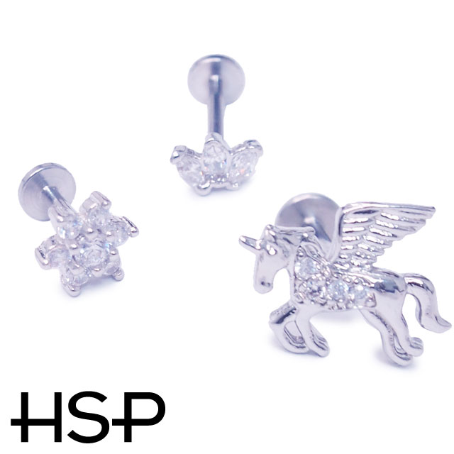 ボディピアス CZトップ ユニコーン マーキーズ フラワー ラブレットスタッド 16G シルバー 花 一角獣 軟骨ピアス 耳ピアス ヘリックス 金アレ