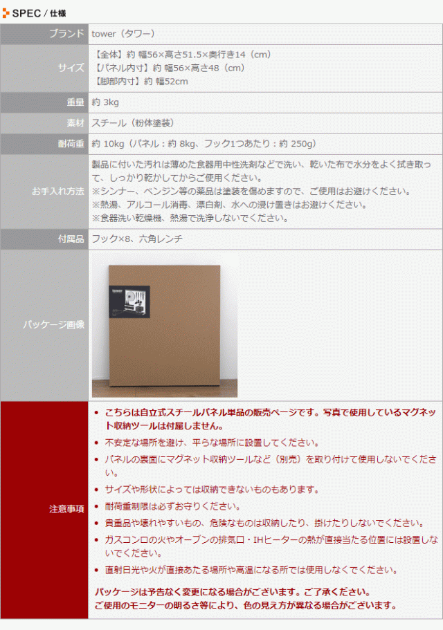 スチールパネル マグネットボード キッチンパネル サイドラック キッチンラック スチール パネル 便利 ツール スペース フック 壁面収納 キッチン収納 tower タワー キッチン自立式スチールパネル 縦型 5124 5125 4903208051248 4903208051255