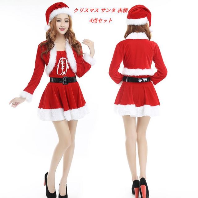 サンタコス サンタクロース コスチューム クリスマス コスプレ サンタワンピース 仮装 4点セット 新作 送料無料