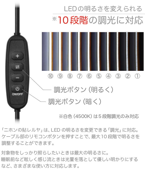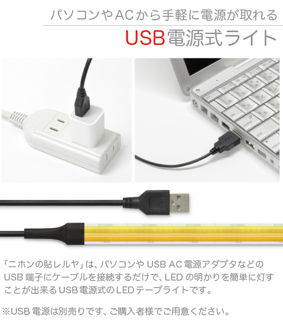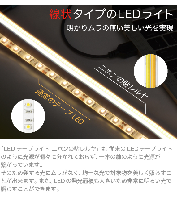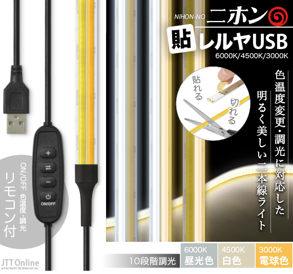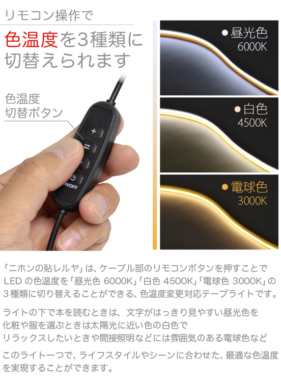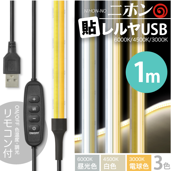LED USB 照明 テープライト ニホンの貼レルヤ USB 1m(6000K/4500K/3000K 色温度切替)美しく明るい 10段階 調光・切って貼れる