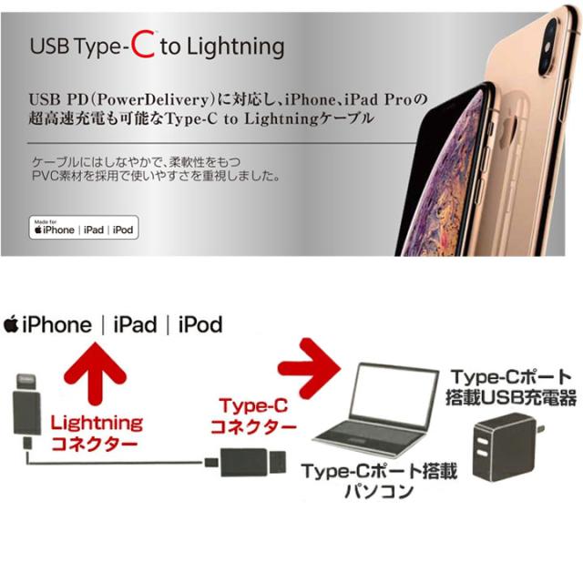 iPhone iPad Pro iPod 充電 ケーブル 急速 高速 PD ライトニング パワーデリバリー Type-C to Lightningケーブル 1.5m USB PD Power Delivery対応 アイフォン 充電 ケーブル Type-C タイプC ライトニングケーブル 同期 アップル社 MFi認定 メール便送料無料