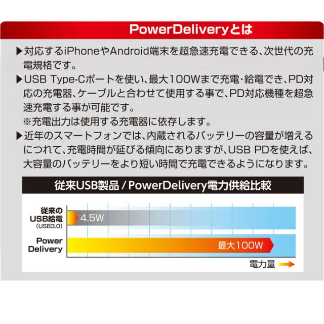 USB PD(Power Delivery)に対応しています。