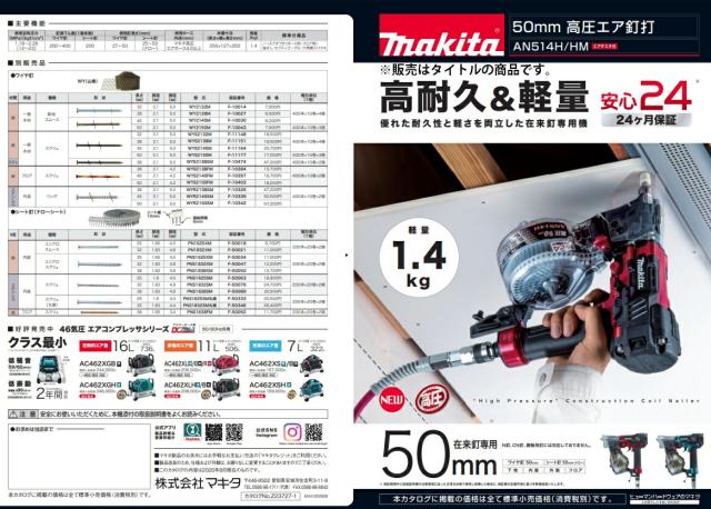 (マキタ) 50mm高圧エア釘打 在来釘専用 AN514HM 青 プラスチックケース付 エアダスタ付 ワイヤ釘50mm シート釘(ナロー)50mm 低騒音83dB(A) makita