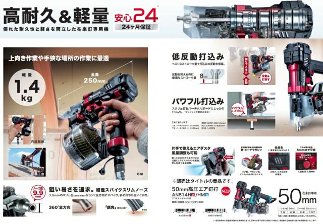 優れた耐久性と軽さを両立した在来釘専用機