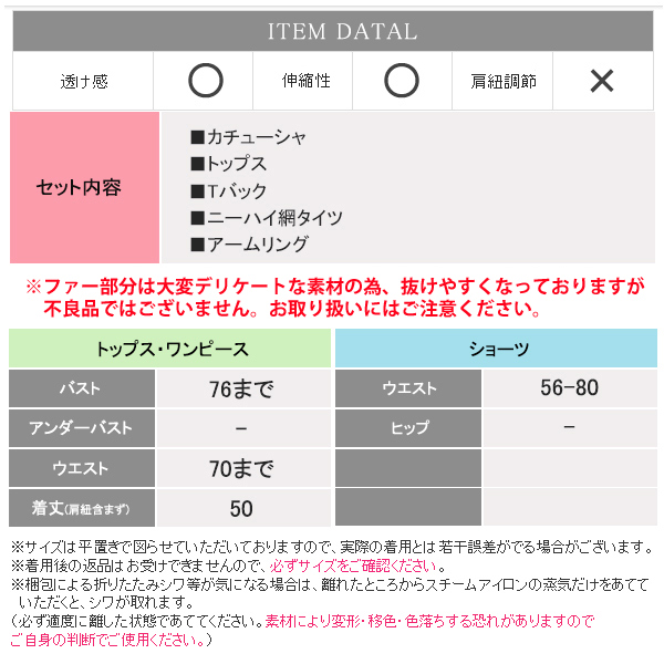 バスト 76cmまで ウエスト 70cmまで 着丈 50cm ショーツウエスト 56-80cm