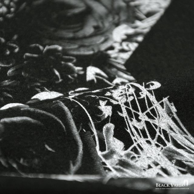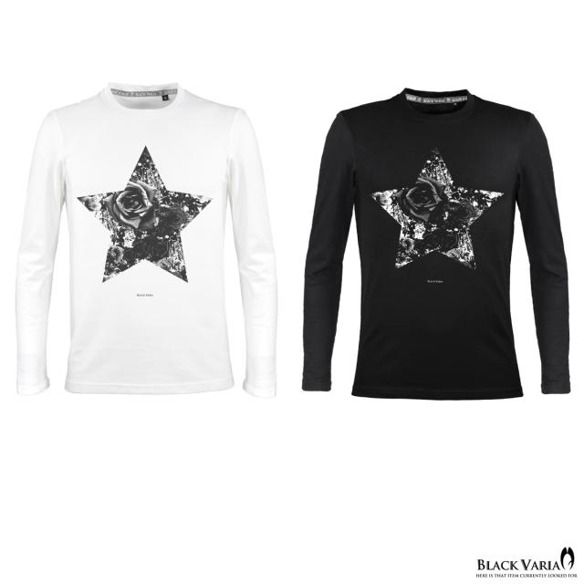 メール便可/1枚まで Tシャツ 長袖 クルーネック 星 スター バラ 薔薇柄 花柄 丸首 メンズ スリム 細身 mens(ブラック黒) crzkk035ls