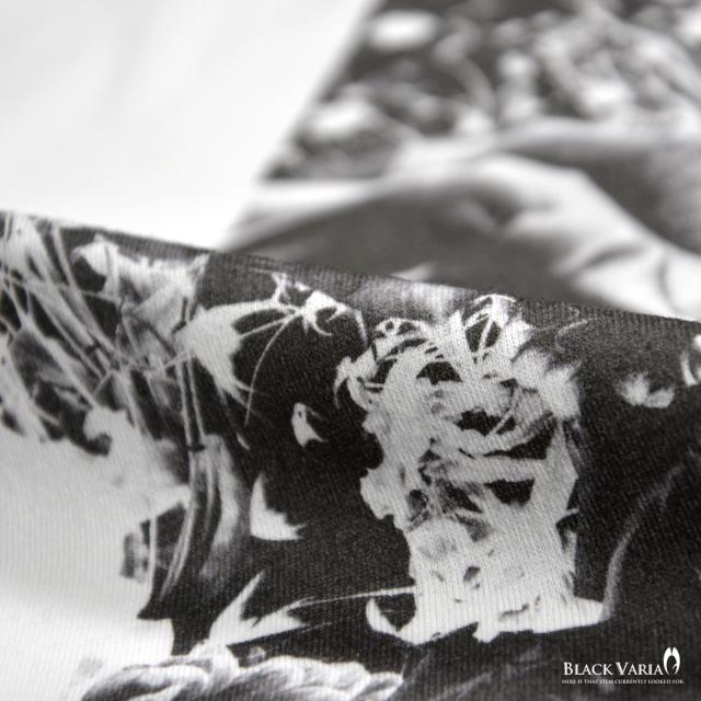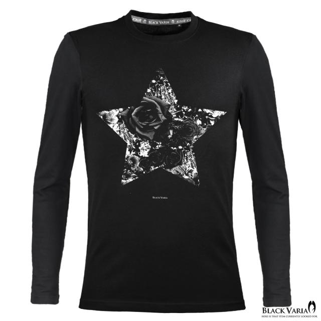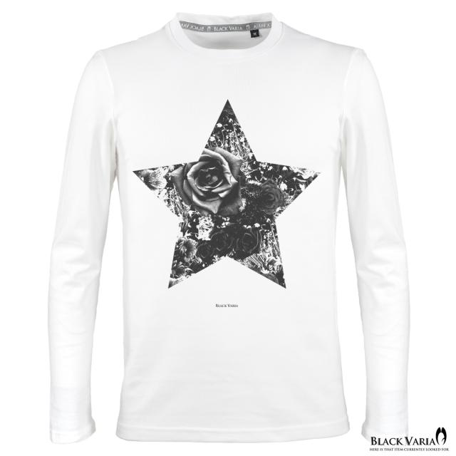 メール便可/1枚まで Tシャツ 長袖 クルーネック 星 スター バラ 薔薇柄 花柄 丸首 メンズ スリム 細身 mens(ホワイト白) crzkk035ls