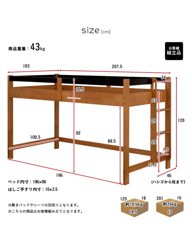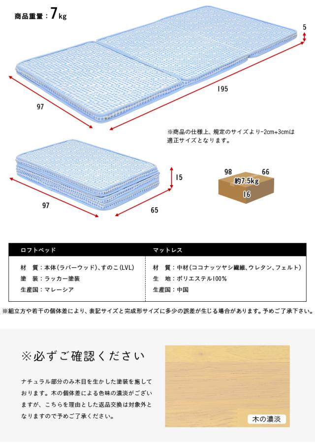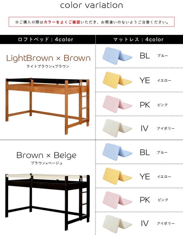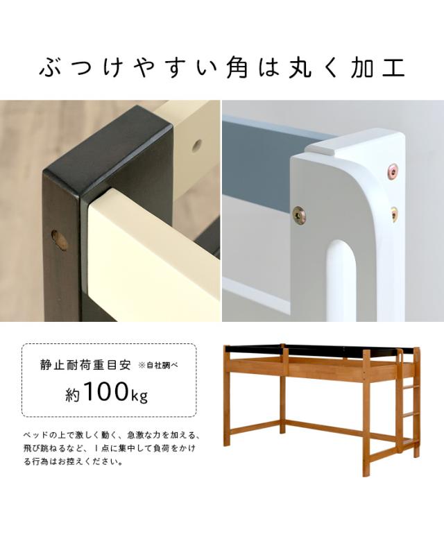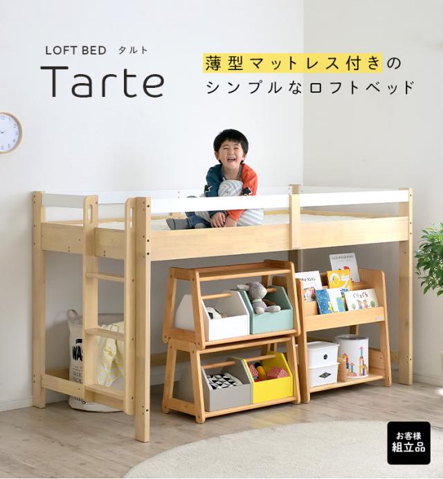【マットレス付き】ロータイプ ロフトベッド Tarte(タルト) H120cm + ココナッツパームマットS am(アム) セット 木製 シングルサイズ シングル システムベッド 子供用ベッド ミドル おしゃれ 子供部屋