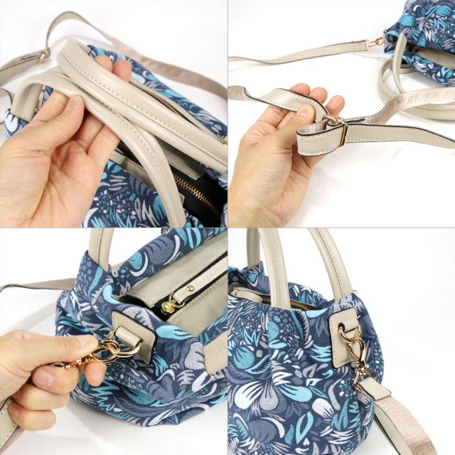 ハンドバッグ バルーン 2WAY ショルダーバッグ Anti-Forme Design ファブリック レディース バッグ フランス 生地 花柄 ボタニカル柄 THEVENON テヴェノン テベノン 大人 おしゃれ 持ち手 本革 レザー 牛革 アンチフォルムデザイン 送料無料 ブルー SALE