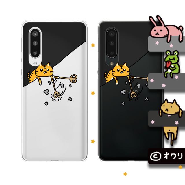 AQUOS zero 5G basic (au DX SHG02 / SoftBank A002SH) スマホ ケース カバー オワリ 「布団を叩くトラ」 透明