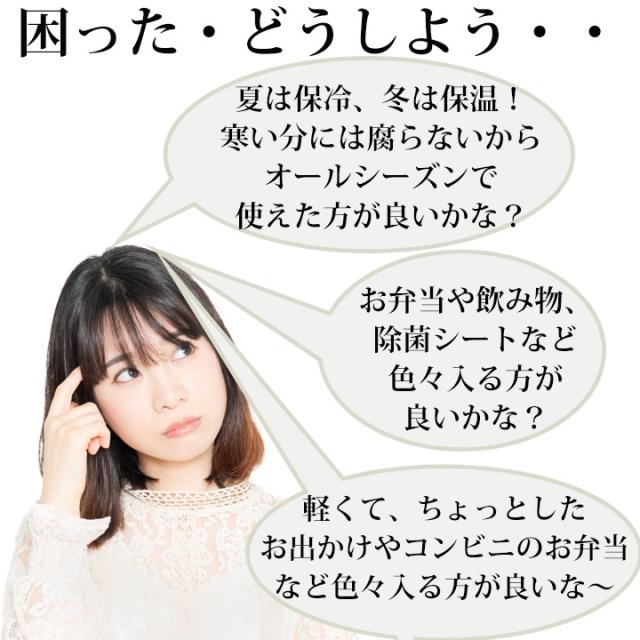 保冷機能、しっかりとした丈夫な生地、シンプルなデザインとカラー、便利なポケット付き!
