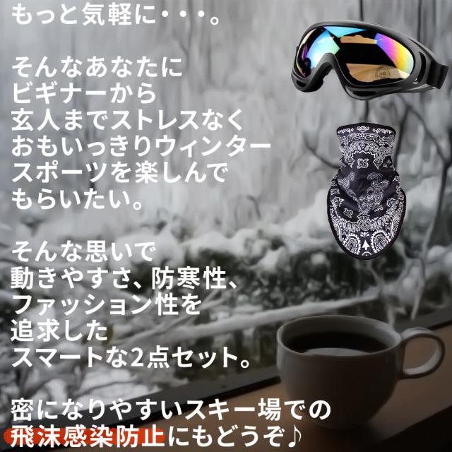 スキー スノーボード ゴーグル レディース メンズ キッズ ミラー スノボ スノボー フェイスマスク 防寒 ネックウォーマー アウトドア ウィンタースポーツ バイク uv スポーツバンダナ フィッシング フェイスガード サバゲー 2点セット 送料無料