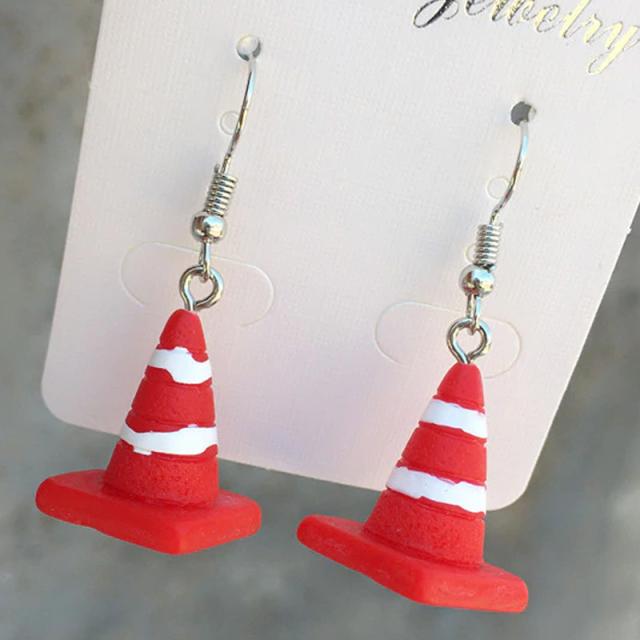 工事中の通行止めや高速道路で危険を知らせる赤色の円すい型のパイロンをリアルに再現したミニチュアサイズの面白い3Dステンレスピアス。