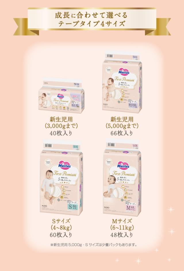 【メリーズ おむつ テープ ファーストプレミアム 新生児用3000gまでの商品詳細】