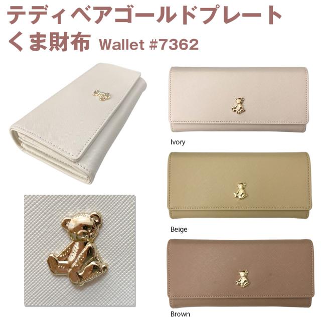 【メール便なら送料無料 】立体的なテディベアのゴールドプレートが可愛い! 長財布 小銭入れあり お札入れあり カードポケットあり くま 熊 クマ ベア 財布 かぶせ カブセ レディース かわいい 可愛い ガーリー 動物 アイボリー ベージュ ブラウン