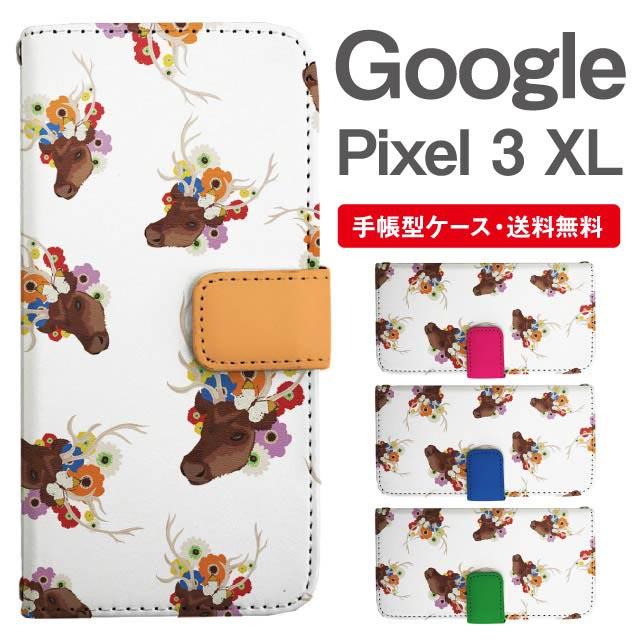 スマホケース 手帳型 Google Pixel3 XL グーグル ピクセル 携帯ケース カバー 送料無料 シカ アニマル 動物 フラワー agesugi_ssm