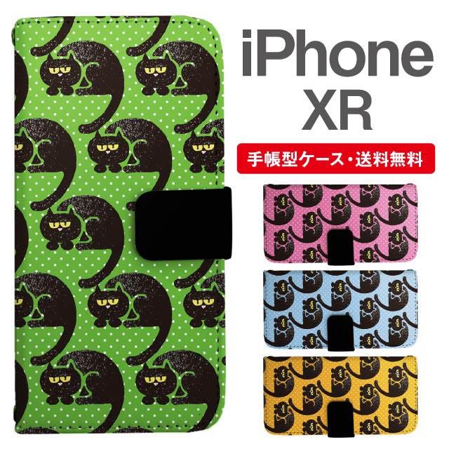 スマホケース 手帳型 iPhone XR アイフォン 携帯ケース カバー 送料無料 ねこ 黒猫 アニマル 動物 agesugi_ssm