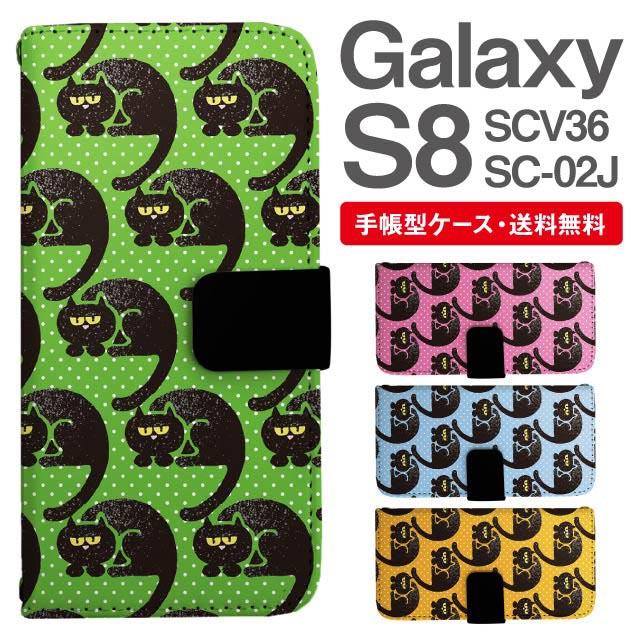 スマホケース 手帳型 Galaxy S8 ギャラクシー SC-02J SCV36 携帯ケース カバー 送料無料 ねこ 黒猫 アニマル 動物 agesugi_ssm